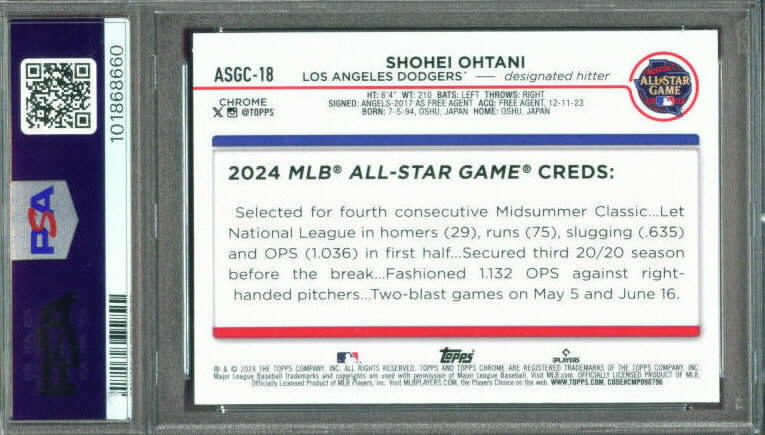 Topps Chrome Update: 2022 All Star Game SHOHEI OHTANI - Angels PSA-9 $30.00
