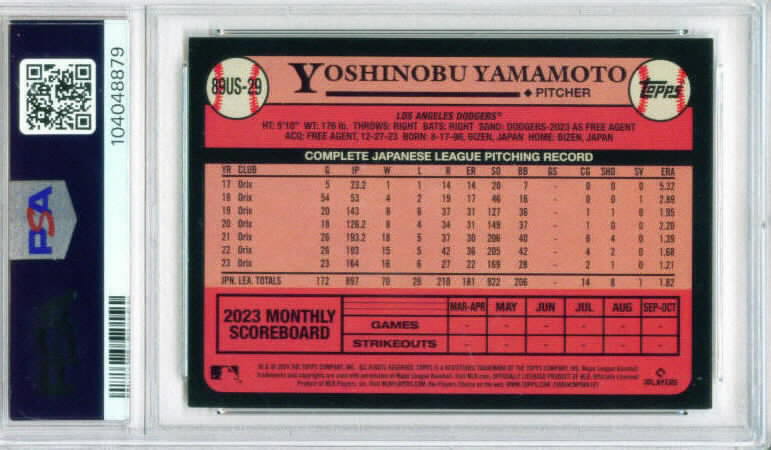 Topps Update #28 YOSHINOBU YAMAMOTO rc Dodgers PSA-8.5 $12.00
