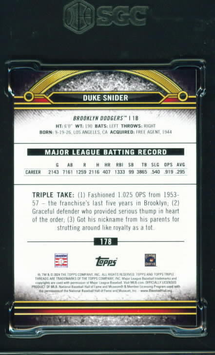 Topps Triple Threads: Aquamarine #178 DUKE SNIDER - Dodgers SGC-9 $29.00