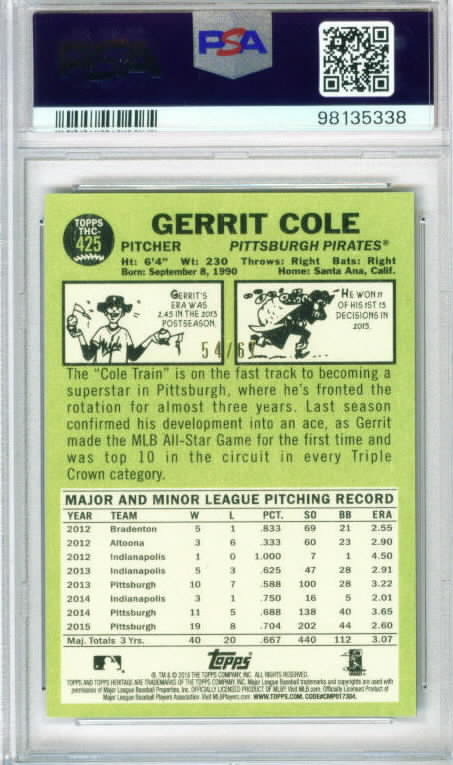 Topps Chrome Platinum Anniversary: Cream/Gold Refractor #404 GERRIT COLE - Yankees PSA-9 $33.00