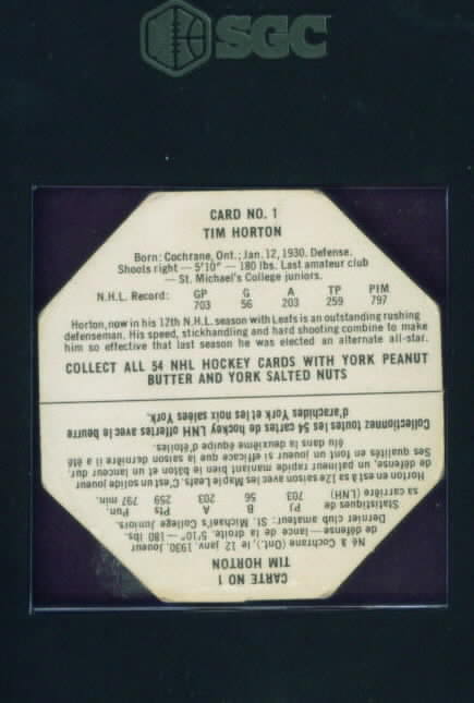 York Peanut Butter #1 TIM HORTON - Maple Leafs SGC-3 $35.00